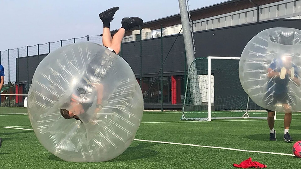 The lads have continued to work hard on their ‘Away goals count double: score yours through EU Mobility!’ trip to Budapest with gym sessions and an interesting punt at ‘bubble football’ seeing them take the enjoyment levels to new heights.
