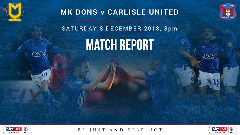 The game became comfortable for the Dons when Carlisle were caught light at the back as Lewington was sent free on the left flank. His cross was perfect for Agard and the prolific forward left Collin with no chance as his deft flick took the ball into the bottom corner.
