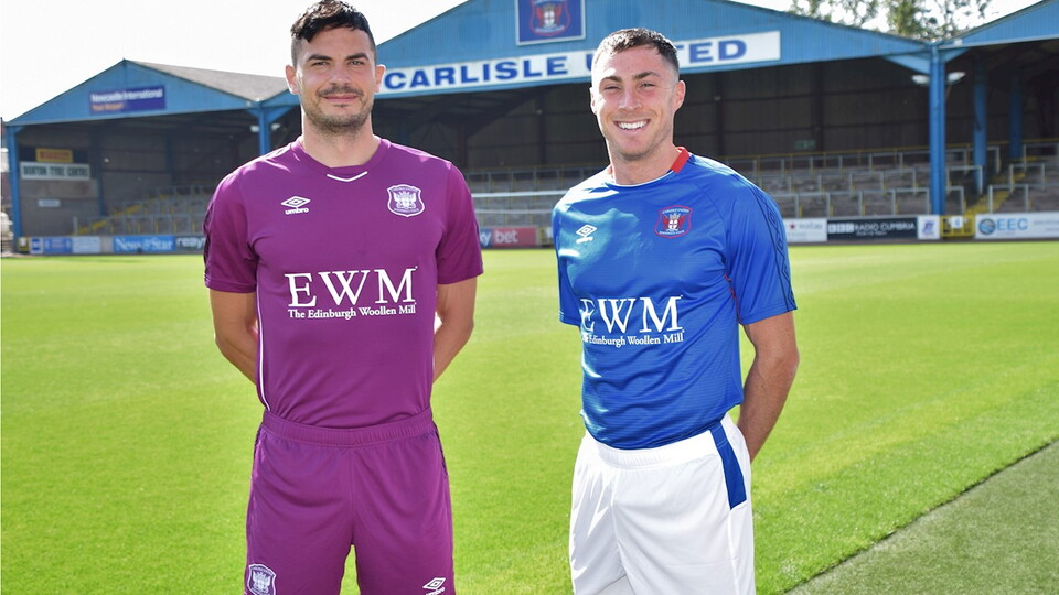 We got defender Gary Miller and midfielder Mike Jones to model the pre-production Umbro home and away kits at Brunton Park this afternoon.