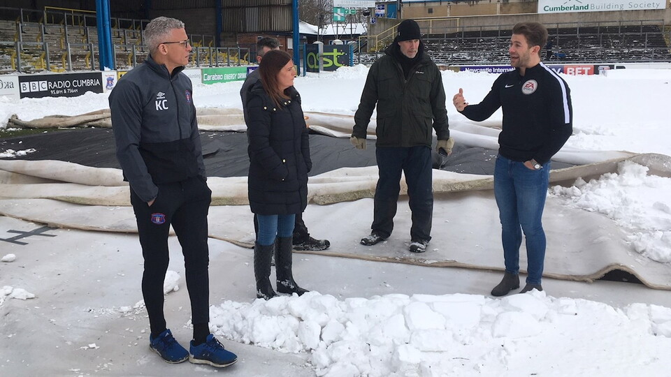 “Dave has taken the decision that the snow will be cleared as late as possible to make sure the frost doesn’t get into the pitch overnight,” he explained. “We’re asking for volunteers on Saturday morning to help clear the snow off the pitch, and Dave will be organising and letting people know what needs to be done in the morning.