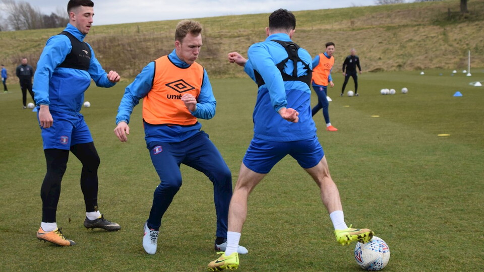 The first team squad trained at Creighton Rugby Club on Thursday afternoon as preparations continue ahead of the game against Cambridge United at Brunton Park on Saturday.