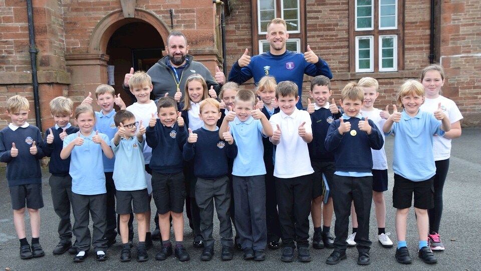 Club captain Danny Grainger went along to Lazonby CE School on Friday afternoon ahead of their visit to Brunton Park to watch the Tranmere Rovers game as part of our Community Ticket Scheme, supported by The Cumberland.