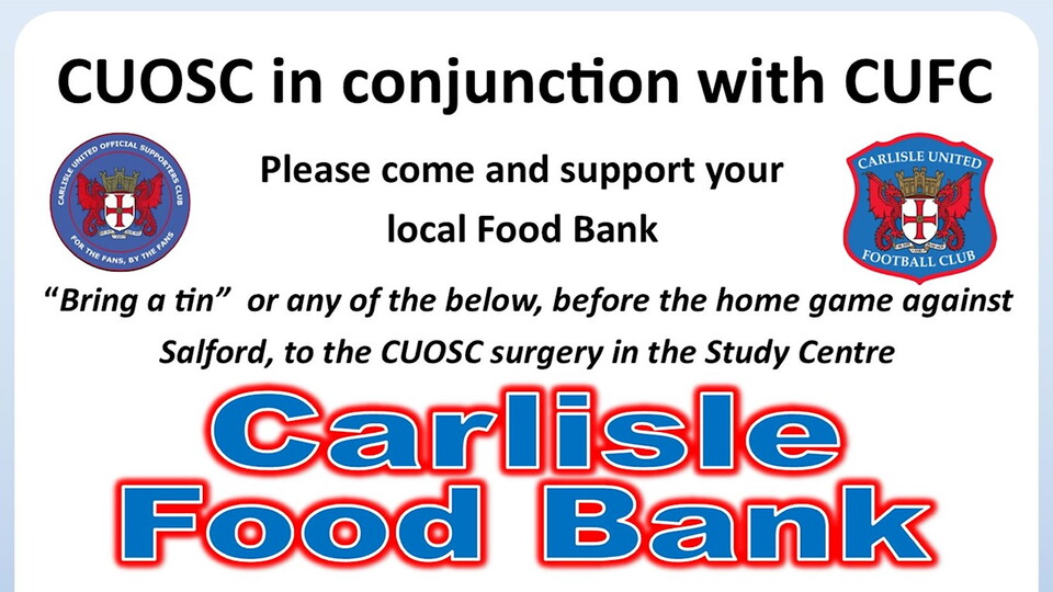 CUOSC, in conjunction with Carlisle United, are holding a foodbank appeal before the home game against Salford on Saturday 24 August.