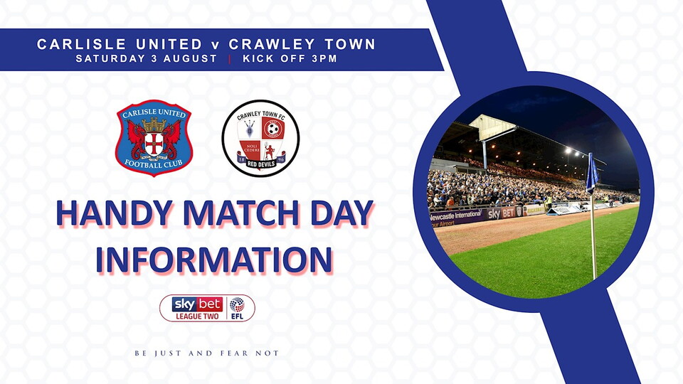 Crawley supporters – click HERE for your downloadable Away Fan Guide ahead of your visit to Brunton Park.