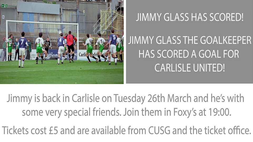 Club legend Jimmy Glass returns to Carlisle on Tuesday 26 March to celebrate the 20th anniversary of possibly the most important goal in the history of Carlisle United.