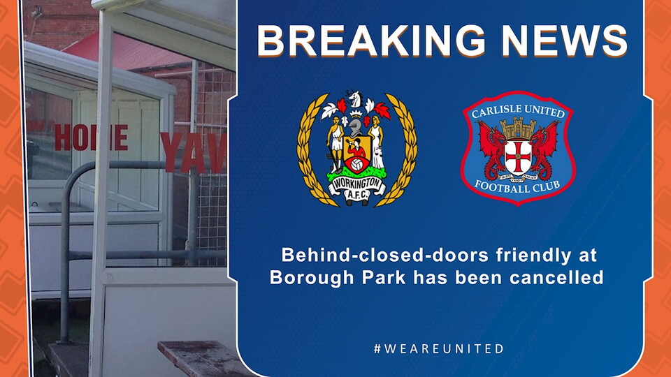 The behind-closed-doors pre-season friendly between Workington AFC and Carlisle United, due to be held at Borough Park on Saturday 15 August [kick off 3pm], has been cancelled.