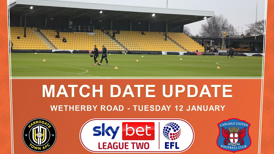Harrogate Town v Carlisle United, Tuesday 12 January, kick off 7pm