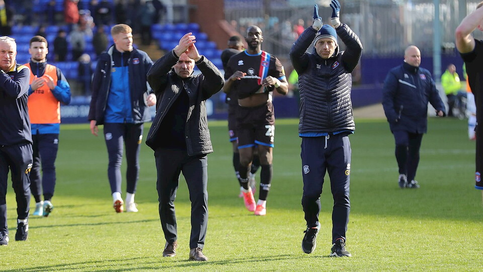 “I’m sorry but we’re not safe,” he said. “I still think we need to keep going. Stevenage have still got a game in hand, and I think that’s against Mansfield because it got called off the other week.