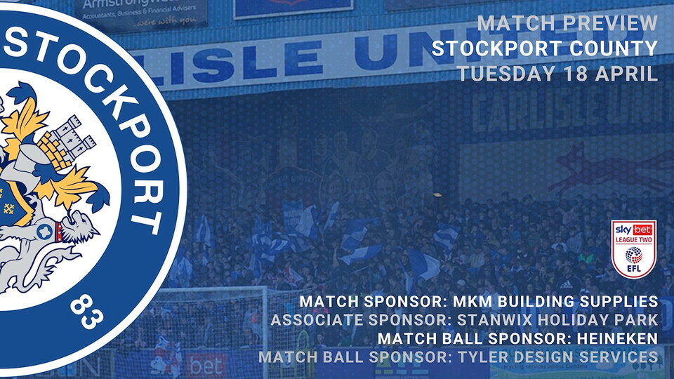 Carlisle United v Stockport County, Tuesday 18 April, kick off 7.45pm