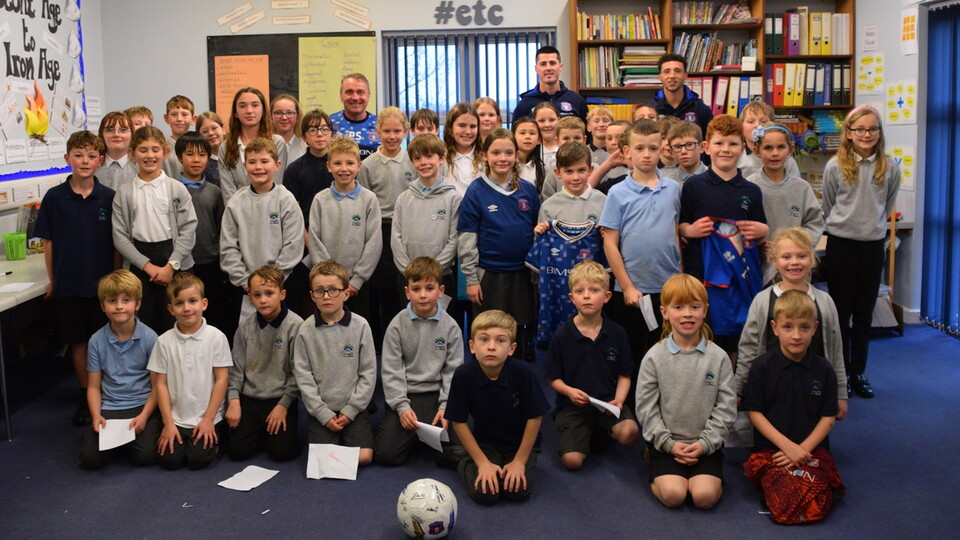 Manager Paul Simpson and first-team players Jordan Gibson and Jon Mellish went along to Ivegill CE Primary School last week for a Q&A session with years 3, 4, 5 and 6.