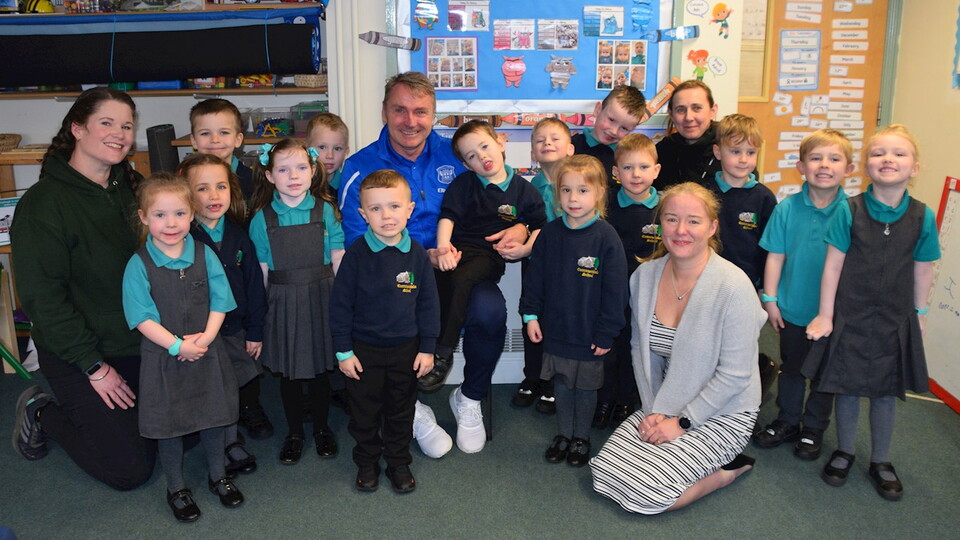 United boss Paul Simpson was guest of honour at Cummersdale Primary School on Tuesday morning, ahead of the Barrow game, where he met the Reception pupils for a Q&A before getting a guided tour of school, where he once again found himself as a the star attraction.