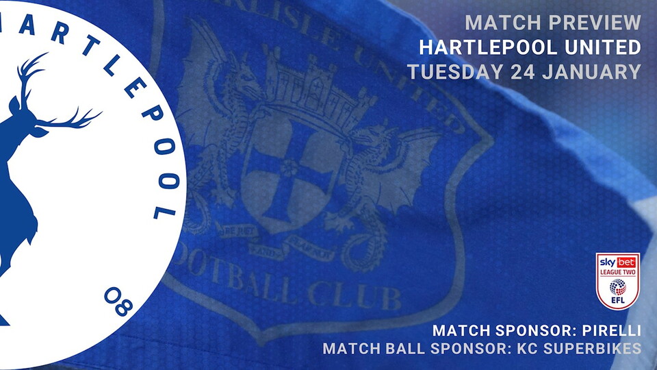 Carlisle United v Hartlepool United, Tuesday 24 January, kick off 7.45pm