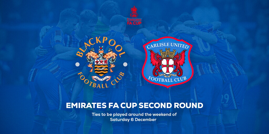 Club News BLACKPOOL TRIP IN FA CUP SECOND ROUND 3rd November 2025 United will travel to Blackpool in the Second Round of the Emirates FA Cup.Ties are set to be played around the weekend of Saturday 6 December 2025.Fixture and ticket information will be released in due course. Previous Read Time: 1 mins
