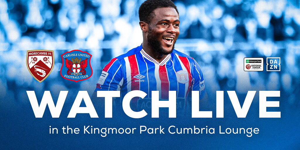 Carlisle United travel to Morecambe for a 3pm kick-off on Monday afternoon, which will be shown live in the Kingmoor Park Cumbria Lounge.